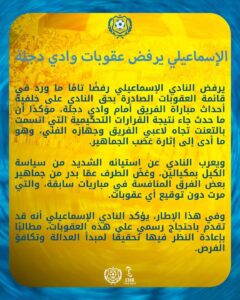 أخبار اليوم الإسماعيلي يرفض عقوبات رابطة الأندية ويتقدم باحتجاج رسمي قراءة المقال » ayonriydah فبراير 22, 2026