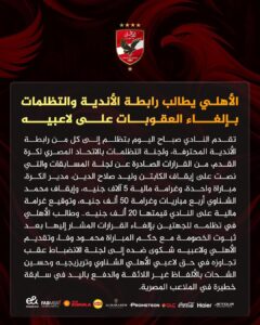 أخبار اليوم الأهلي يطالب رابطة الأندية والتظلمات بإلغاء العقوبات على لاعبيه قراءة المقال » ayonriydah أبريل 11, 2026