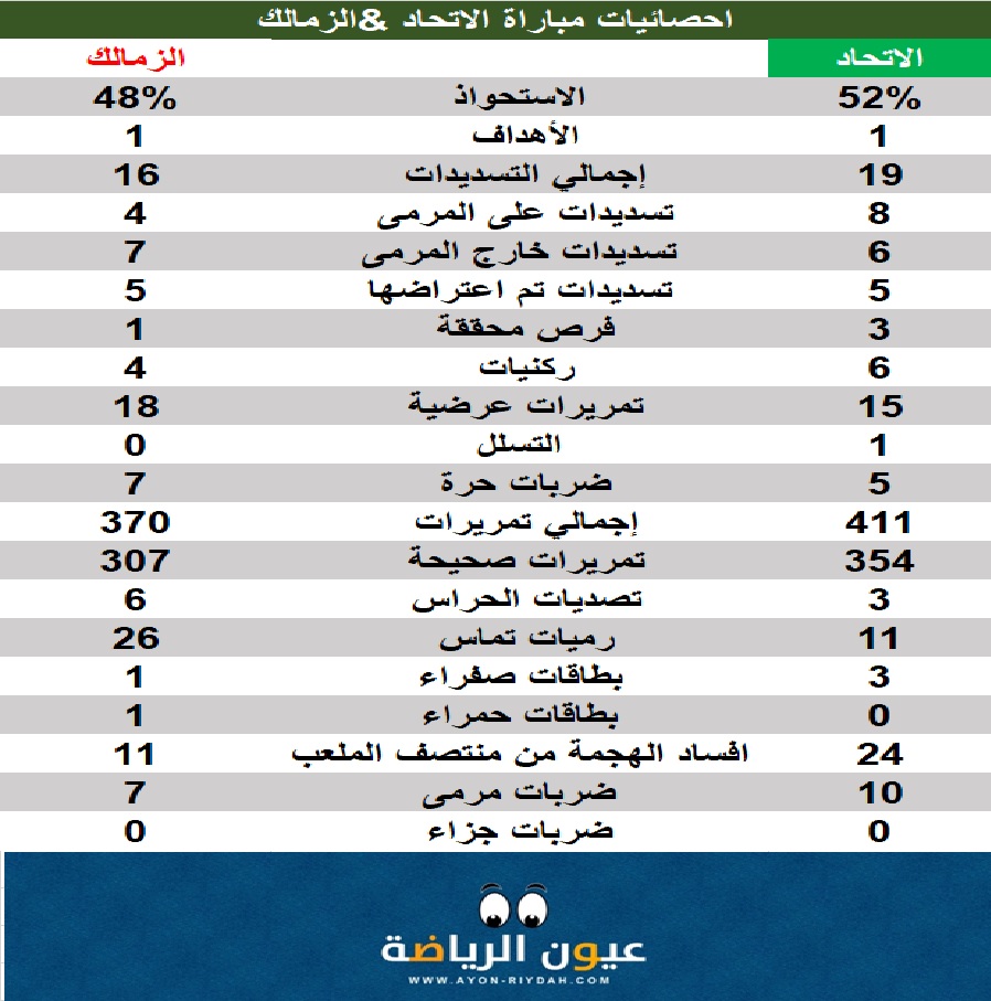 ومعكم الجدول للإحصائيات وفيه الأرقام تتحدث عن نفسها :