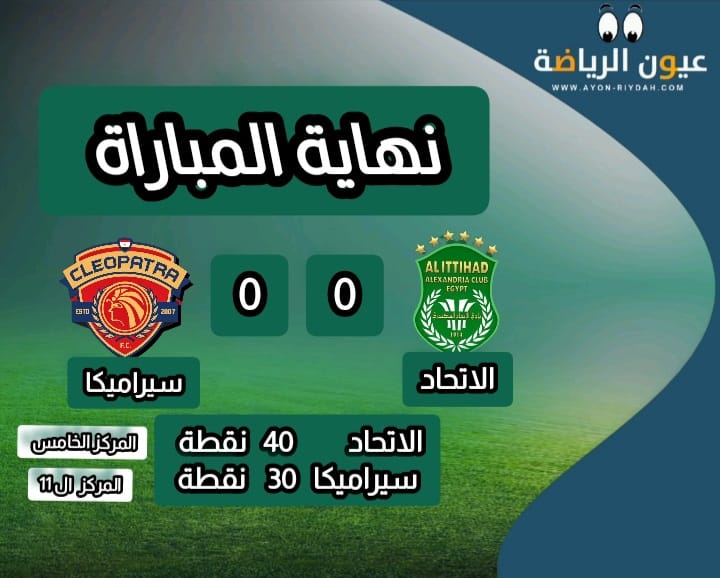 ويحاول الاتحاد خطف هدف الفوز ولكن بطء الأداء يحول دون ذلك لينتهي اللقاء بالتعادل السلبي بين الفريقين ويصعد الاتحاد للنقطة 40 في مركزه الخامس ويصعد سيراميكا للنقطة 30 في المركز 11
