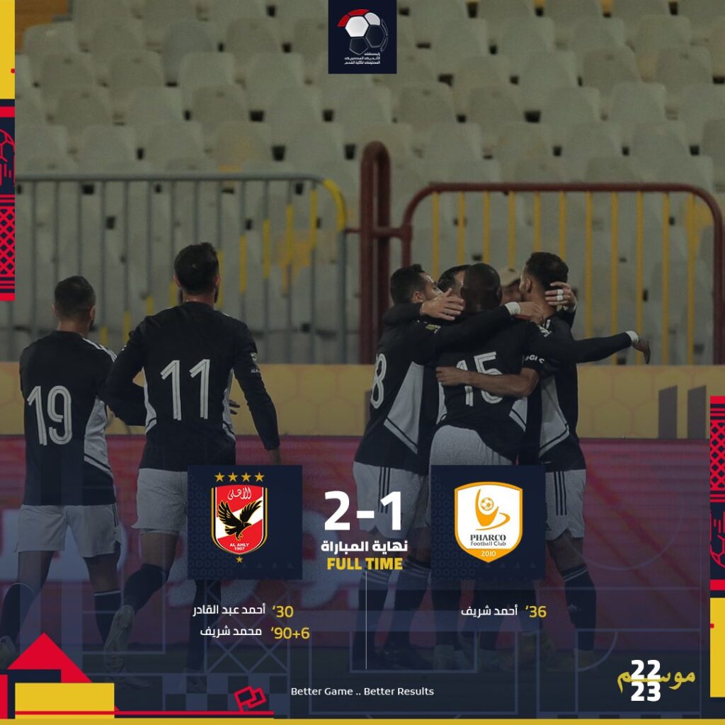 كعادة النادي الأهلي خطف الفوز على فاركو في الدقيقة 96.24 بعد ان احتسب الحكم 6 دقائق وقت بدل ضائع ولكن الحكم مد الوقت قليلا وتمكن الأهلي من تسجيل هدف الفوز الثاني بعد ان كان التعادل الإيجابي بهدف لكل فريق مسيطر على اللقاء