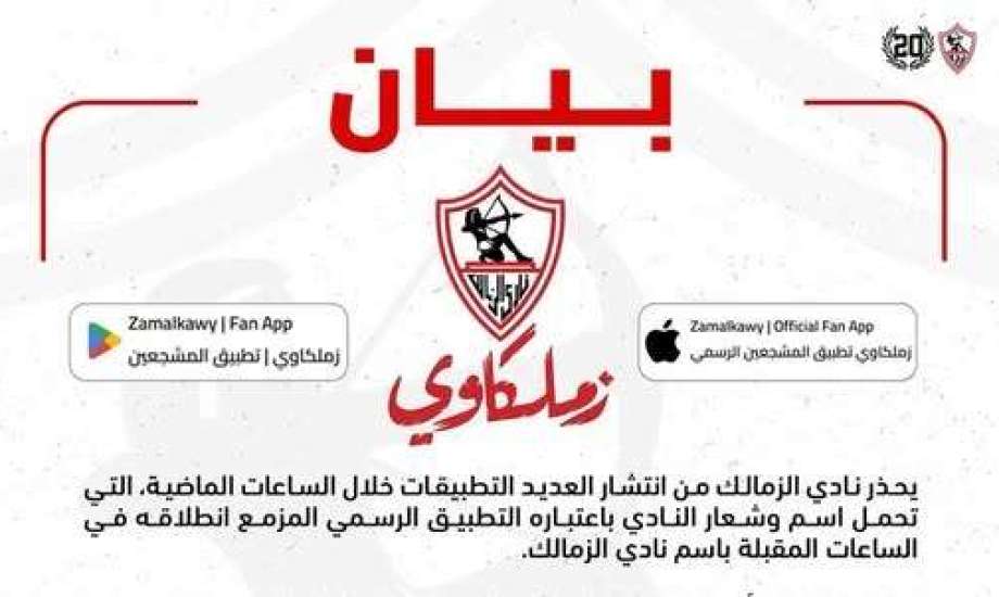 يؤكد النادي في بيانه الرسمي أن كل التطبيقات المنتشرة حاليًا والتي تحمل اسم الزمالك أو شعاره ليست لها أي علاقة بنادي الزمالك على الإطلاق، وهي مجرد محاولات احتيالية تستهدف استغلال شعبية النادي لتحقيق أرباح غير مشروعة.