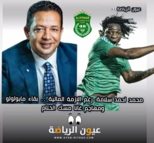 اخبار الاندية محمد احمد سلامة: رغم الازمة المالية .. بقاء مابولولو ومهاجم غانا مسك الختام قراءة المقال » احمد ابراهيم سبتمبر 9, 2023