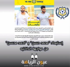 اخبار الاندية الإسماعيلي :استبعاد محمد حسن واحمد محسن من مواجهة الداخلية قراءة المقال » ayonriydah يوليو 9, 2023