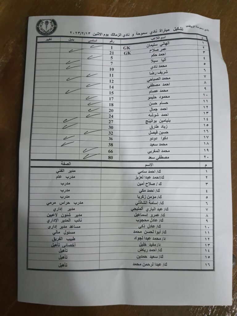 اختار احمد سامي المدير الفني لسموحة تشكيل فريقه الذي سيبدأ به امام الزمالك بالجولة 18 بالدوري المصري الممتاز