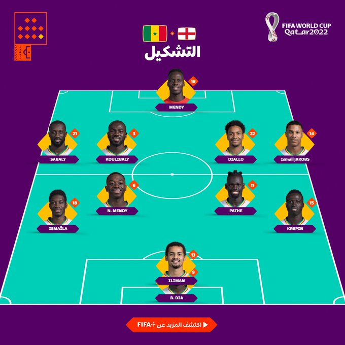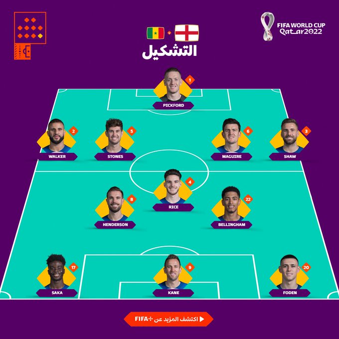 تعرف على تشكيل منتخبي السنغال وانجلترا في لقاءهما بدور ال16 بكاس العالم المقام حاليا بقطر