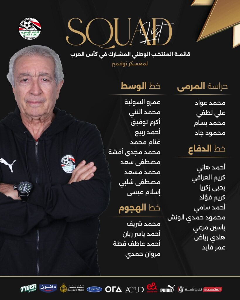 أعلن الجهاز الفني للمنتخب الوطني المشارك في كأس العرب ، بقيادة حلمي طولان، قائمة اللاعبين للدخول فى معسكر مغلق غدًا، الاثنين، استعدادًا لمواجهتي الجزائر، فى المرحلة الأخيرة من خطة الإعداد لبطولة كأس العرب في قطر مطلع الشهر المقبل وجاءت القائمه كالتالي: