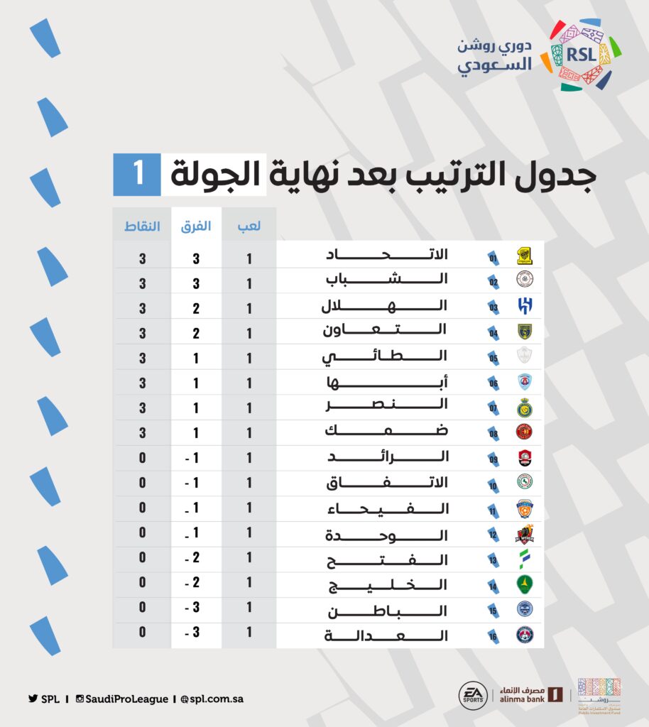 افتتح الدوري السعودي للمحترفين موسمه الجديد 2022 -2023 تحت مسمى جديد باسم دوري روشن للمحترفين ويضم الدوري السعودي 16  فريقا
