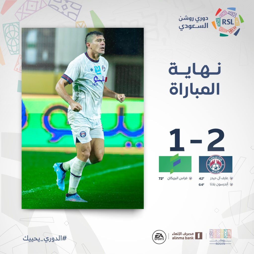 ورفع العدالة رصيده إلى 8 نقاط، ليحتل المركز الرابع عشر في ترتيب دوري روشن السعودي، بينما تجمد رصيد الفتح عند 15 نقطة، في المركز التاسع.