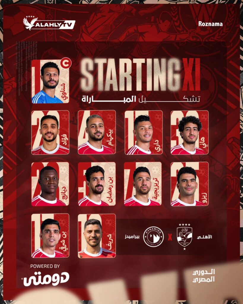 أعلن الجهاز الفني لفريق الكرة بالنادي الأهلي بقيادة الإسباني خوسيه ريفيرو المدير الفني للفريق، عن تشكيل فريقه لمواجهة نظيره فريق بيراميدز في الدوري المصري الممتاز للموسم الكروي الحالي.