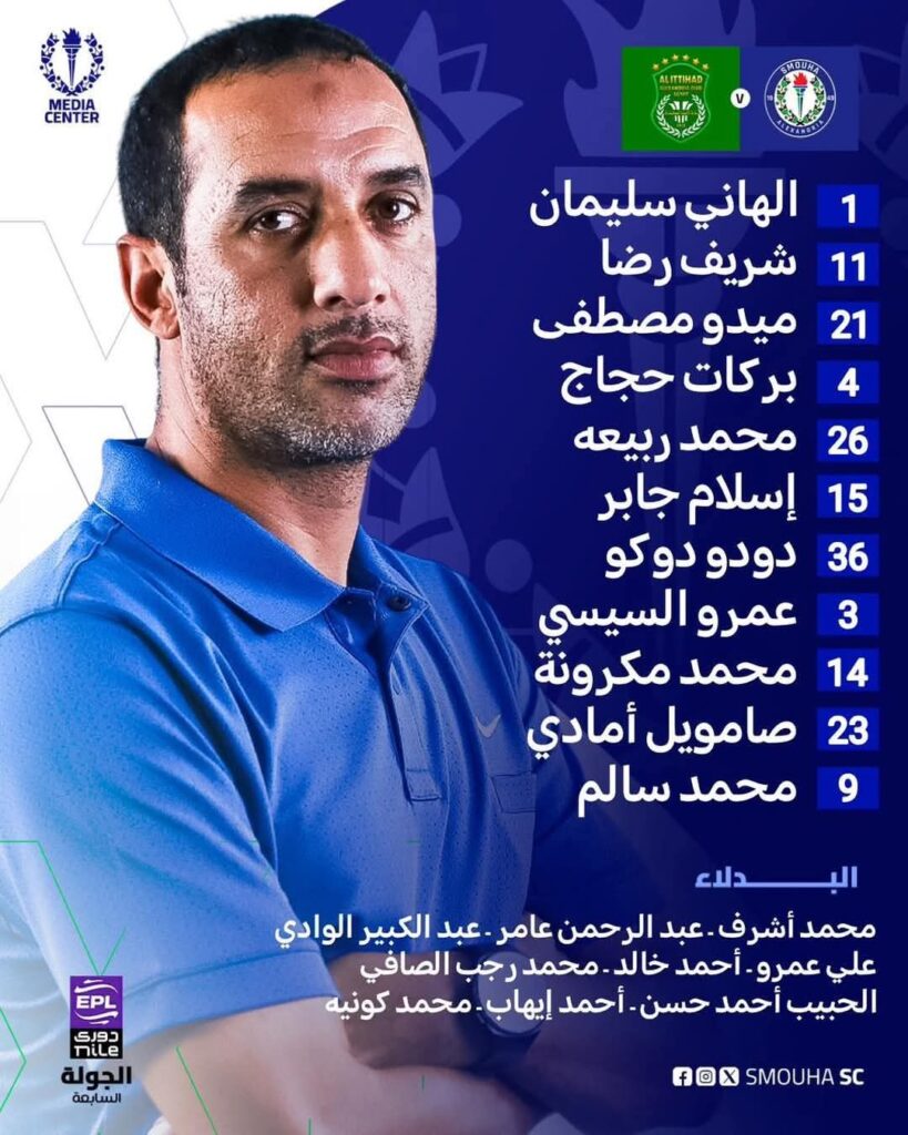 أعلن الجهاز الفني للفريق الأول لكرة القدم بنادي سموحه عن التشكيل الذي سيخوض به فريقه مباراة الاتحا المقرر لها الثامنة مساء اليوم بإستاد برج العرب وذلك ضمن منافسات الجولة السابعة من مرحلة تفادي الهبوط بالدوري