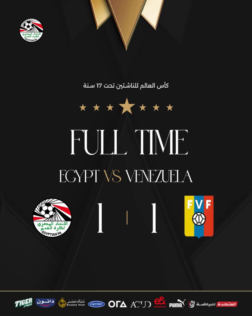 التقى منتخب مصر مع فنزويلا، ضمن منافسات الجولة الثانية من مباريات المجموعة الخامسة لبطولة كأس العالم تحت 17 سنة المقامة في قطر.