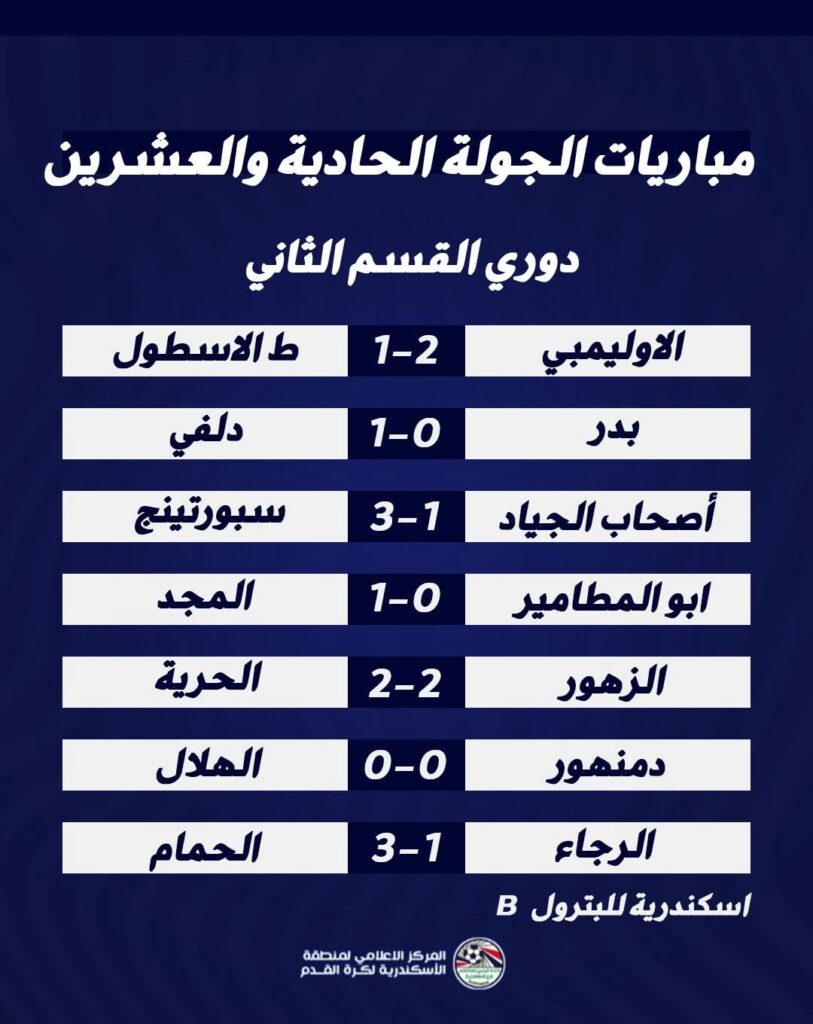 و على الجانب الأخر سيطر التعادل على مباراتي الزهور أمام الحرية بنتيجة 2-2، و مباراة دمنهور و الهلال بنتيجة 0-0.