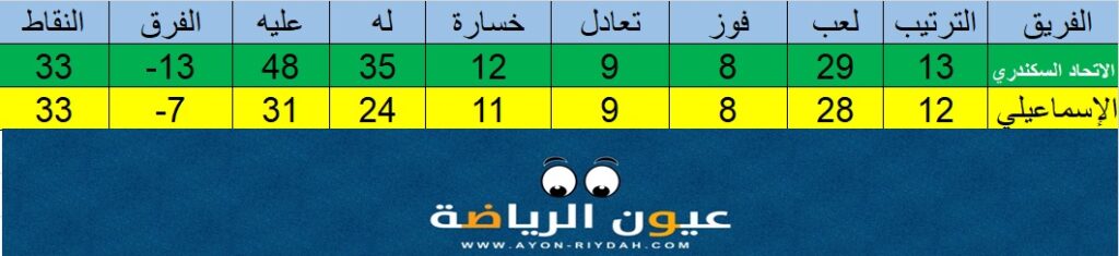 ترصد “عيون الرياضة” لمتابعينا ارقام ونتائج فريقي الاتحاد السكندري والإسماعيلي على الوسط المحلي ونتائج اخر لقاءات الفريقين معا خلال المواسم الاربعة الأخيرة وبناء على تلك الأرقام نتوقع خطة كل فريق للمباراة وطريقة اللعب التي سيؤدي بها كل فريق اللقاء