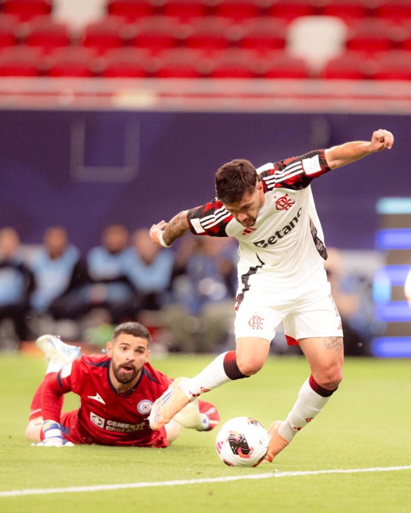 وشهدت المباراة بداية قوية من جانب فلامنجو، إذ افتتح جيورجيان دي أراسكايتا التسجيل مبكرًا عند الدقيقة 15، قبل أن ينجح خورخي سانشيز في إدراك التعادل لصالح كروز أزول في الدقيقة 44، ليعود بعدها أراسكايتا من جديد ويوقع على الهدف الثاني للفريق البرازيلي، مانحًا فلامنجو بطاقة التأهل إلى المربع الذهبي.