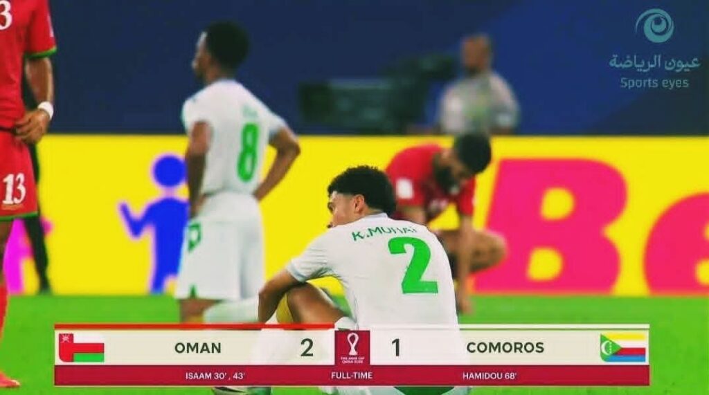 حقق منتخب عمان الفوز على جزر القمر بنتيجة 2-1، حيث سجل عصام الشابي هدفي عمان في الدقيقتين 30، و43، بينما سجل جزر القمر عن طريق حميدو نصير في الدقيقة 68.
