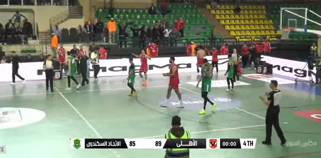 تبدأ الفترة الرابعة بداية قوية من الفريقين ويتقدم الأهلي 70-68 وتعادل 70 -70 ويتقدم الأهلي بنتيجة 85 -77 وتنتهي الفترة الرابعة والمباراة بنتيجة