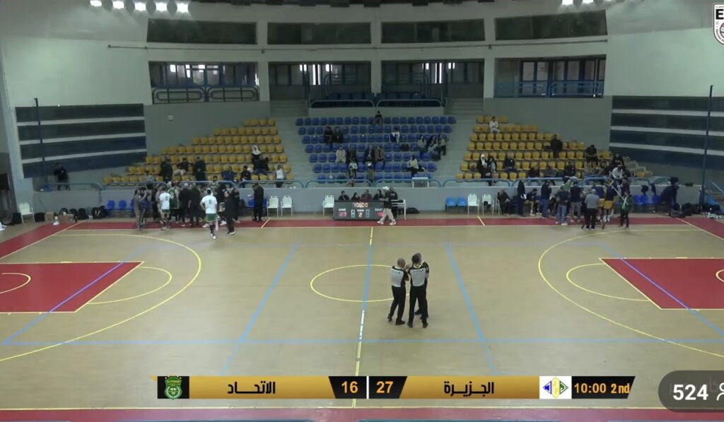 بداية قوية للجزيرة ويتقدم ٩-٢ واخطاء متكررة للاعبي الاتحاد وتقدم للجزيرة ١١-٥ ويوصل الجزيرة التقدم لتصل النتيجه ٢٠- ٩ وتراخي واخطاء في اداء لاعبي الاتحاد وتنتهي الفترة الاولي بنتيجة