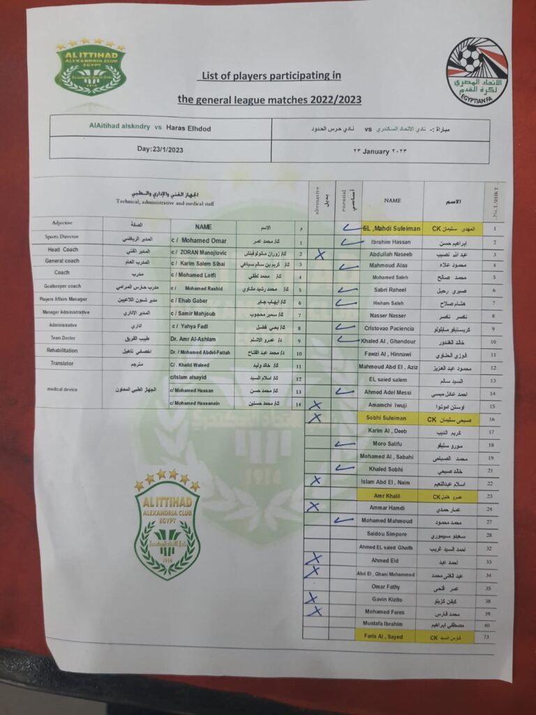 عبد الله نصيب – كيفين كزيتو- اوستن اموتو – عمار حمدي – اسلام عبد النعيم – احمد عيد – عبد الغني محمد – محمد فارس