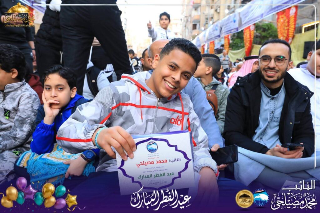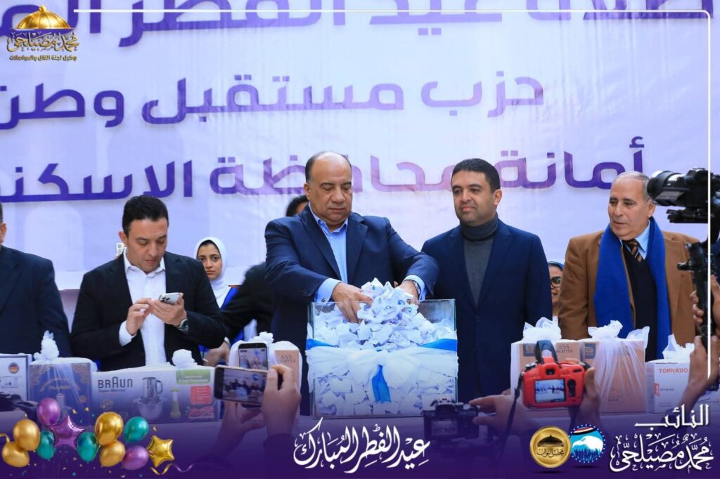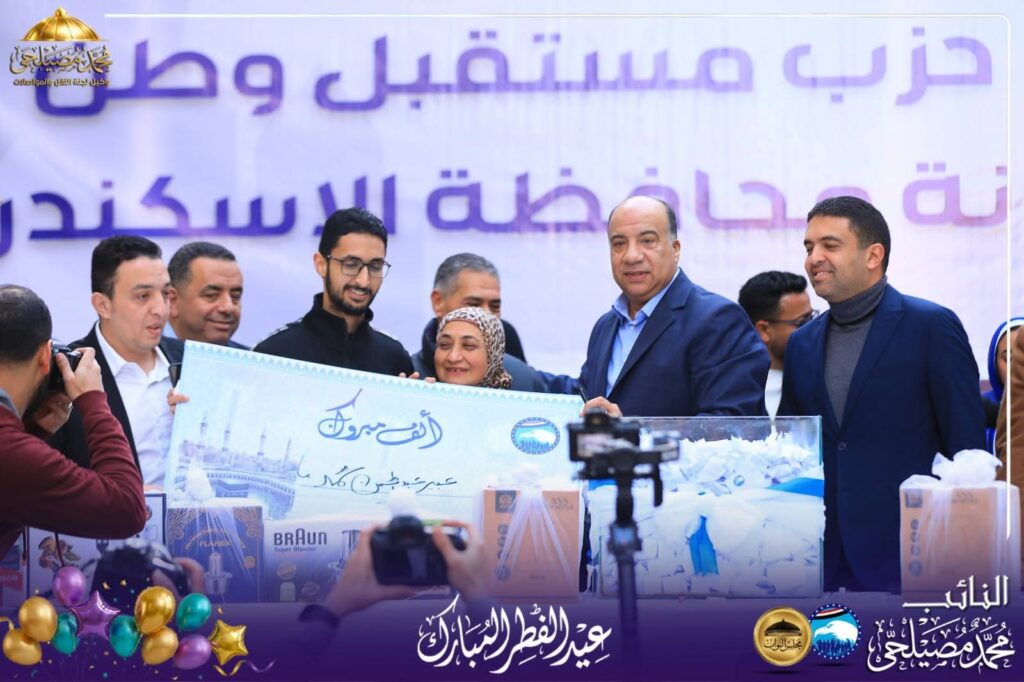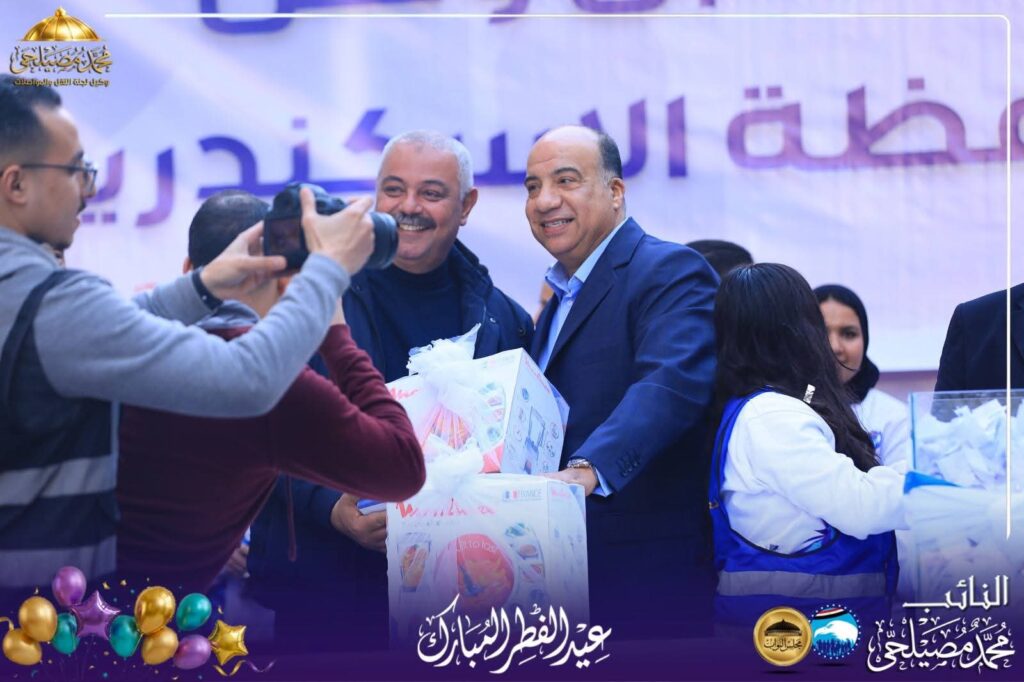 والذي قام بعد صلاة العيد بتوزيع جوائز لاهالي الاسكندرية وشملت رحلات عمرة وجوائز اخرى بهدايا قيمة وكذلك هدايا للاطفال في يوم مثالي للاحتفالية بعيد الفطر للنائب محمد مصيلحي وسط  اهله وناسه