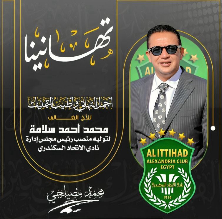 ارسل محمد مصيلحي رئيس نادي الاتحاد السابق والمرشح على راس القائمة الوطنية لحزب مستقبل وطن للبرلمان المصري برقيه تهنئة لمحمد احمد سلامة بمناسبة فوزه برئاسة نادي الاتحاد السكندري بالتزكية الفترة القادمة بداية من ٢٠٢٥ حتى ٢٠٢٩ وجدير بالذكر ان محمد مصيلحي اشاد بسلامة في احد مؤتمراته الانتخابات الأخيرة مشددا على أنه من أفضل من يتولى قيادة زعيم الثغر الفترة الحاليه ومعه مجلسه الحالي مما جعل الجمعية العمومية للنادي تضع ثقتها في الرجل ولم يكن له منافس خلال الترشح للانتخابات القادمة وأرسل مصيلحي برقيه تهنئة لمحمد احمد سلامه عبر التواصل الاجتماعي مفادها ” أتقدم بخالص التهاني للأستاذ محمد أحمد سلامة بمناسبة فوزه برئاسة نادي الاتحاد السكندري بالتزكية، ثقة غالية من أعضاء الجمعية العمومية، نتمنى له كل التوفيق والسداد في قيادة “زعيم الثغر” نحو مرحلة جديدة من العمل والإنجاز.”