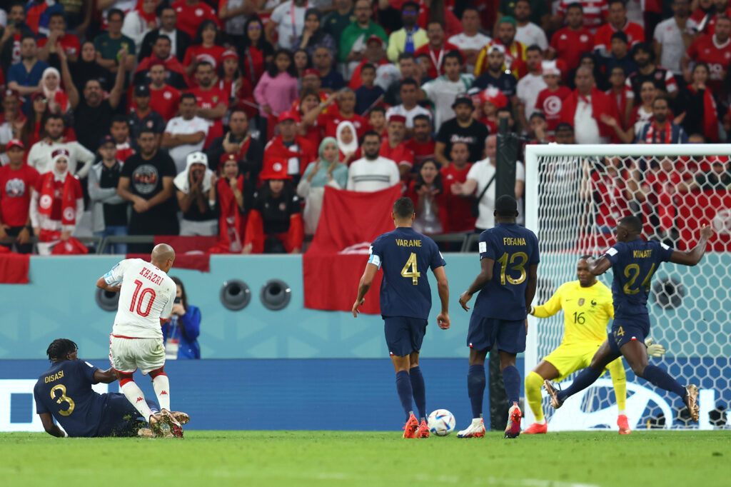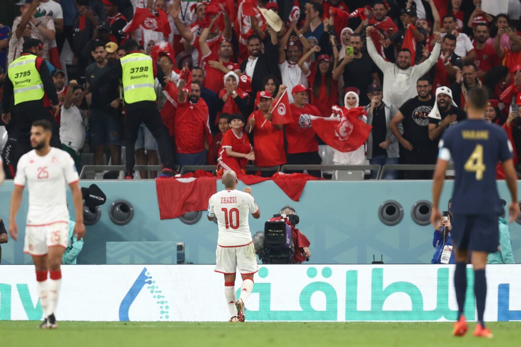 حقق المنتخب التونسى الشقيق فوزا تاريخيا على ستاد المدينة التعليمية على الديك الفرنسى بطل العالم بهدف للاشىء أحرزه نجم مونبيليه الفرنسى وهبى الخزرى بعد أداء رائع و تاريخى للنسور فى أول شوط و ضياع العديد من الفرص التى تصدى لها الدفاع الفرنسى ,كما ألغى الحكم هدف لتونس فى الدقيقة ٨ من بداية المباراة , انتهى الشوط الأول بتعادل الفريقين بعد سيطرة تونسية كبيرة و خاصة بعد تأكد المنتخب الفرنسى و مدربه ديشامب من الصعود كأول المجموعة ,و قام ديشامب باراحة كل من مبابى و جريزمان و جيرو و عثمان ديمبلى ,و فى الشوط الثانى نجح وهبى الخزرى فى الدقيقة ٥٨ من إحراز هدف جميل من هجمة مرتدة تونسية منظمة ليتقدم الفريق التونسى ١-٠,