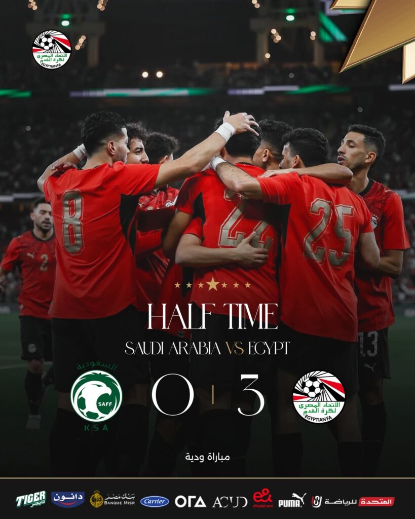وذلك خلال اللقاء الودي الدولي ضمن مباريات ايام الفيفا والذي استضافه ملعب الانماء بالجوهرة المشعة وذلك ضمن استعدادات المنتخبين لكاس العالم القادم بشهر يونيو بامريكا وكندا والمكسيك سجل اهداف المنتخب المصري اسلام عيسى “٤” تريزيجيه “١٦” زيزو “٤٤” مرموش “٥٦”