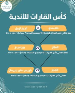 أخبار اليوم تعرف على جدول مواعيد مباريات كأس القارات للأندية إنتركونتيننتال 2025 .. والقنوات الناقلة قراءة المقال » ayonriydah ديسمبر 10, 2025